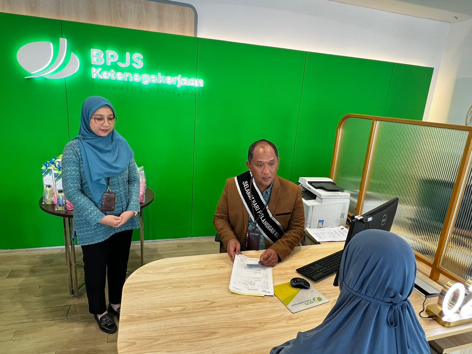 Dalam rangka Harpelnas 2024 ini, Kepala BPJS Ketenagakerjaan Kantor Cabang Pasuruan, Trioki Susanto turun langsung melayani dan menyapa peserta yang hadir dan datang ke Kantor BPJS Ketenagakerjaan Pasuruan.