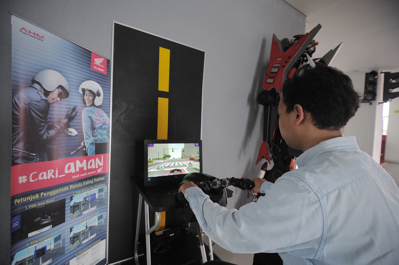 Alat simulator Honda Riding Trainer dapat ditemukan di ruang prediksi bahaya di MPM Safety Riding Course dan jaringan dealer di wilayah Jatim & NTT. (dit/ian).