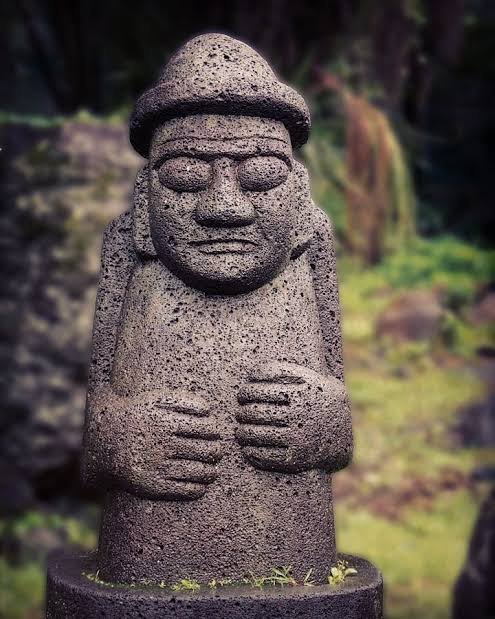Ya, salah satu ciri khas dari pulau yang merupakan surganya wisatawan ini adalah Patung Dolhareubang, patung batu di Pulau Jeju yang memiliki fungsi sebagai pelindung atau penjaga benteng.