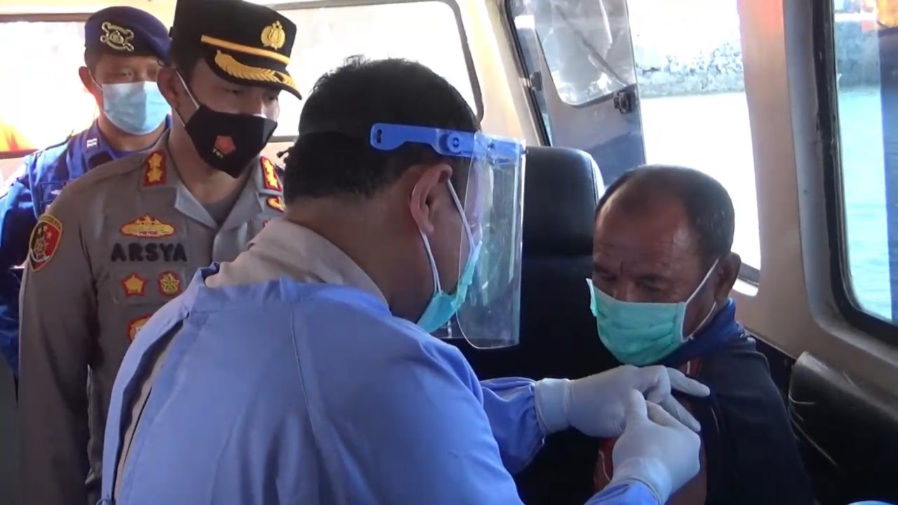 “Petugas yang mendatangi ABK dan nelayan untuk dilakukan vaksin dan ini bertujuan untuk membantu pemerintah dalam percepatan vaksin nasional untuk menuju Herd Immunity. Selesai divaksin mereka mendapatkan bantuan sosial berupa beras,“ tuturnya.