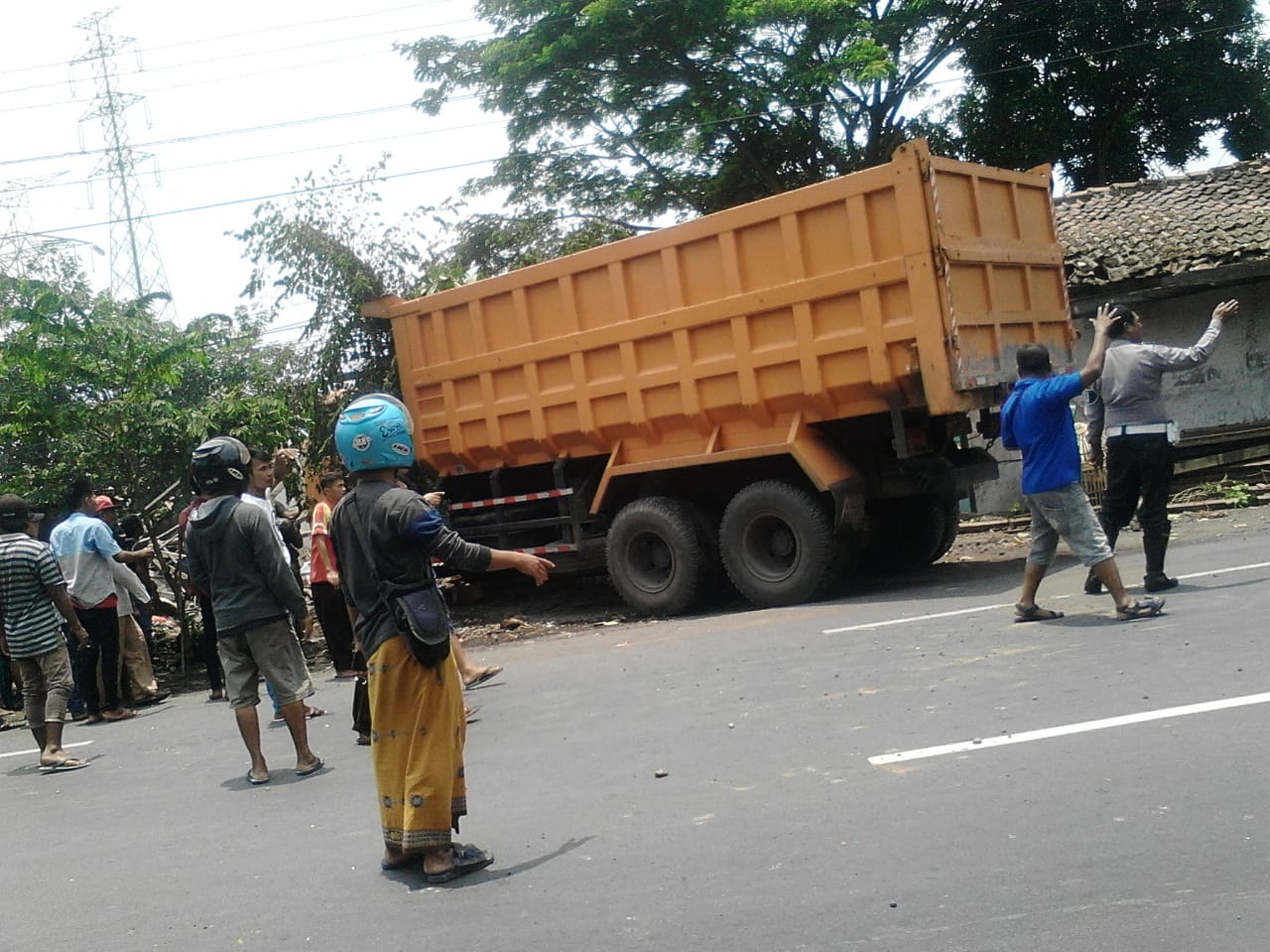 Peristiwa tersebut bermula saat truk tronton dengan Nopol L-8480-UH yang dikemudikan Khoirul Islam (45), berjalan dari arah barat ke timur tiba-tiba oleng ke arah kanan melewati garis marka. Kemudian menabrak sebuah motor yang dikemudikan Siti Fatimah (42) berboncengan dengan Lailatul Karomah (18). Tidak hanya itu, truk juga menabrak 2 (dua) rumah milik warga yang berada di selatan jalan.