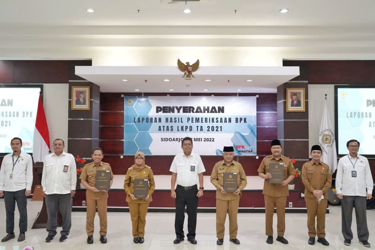 Opini Wajar Tanpa Pengecualian ini diberikan BPK RI perwakilan Jawa Timur atas Laporan Keuangan Pemerintah Daerah tahun anggaran 2021. Penyerahan opini WTP BPK diserahkan secara langsung oleh Kepala Perwakilan BPK Jawa Timur, Joko Agus Setyono di Auditorium Kantor BPK RI perwakilan Jawa Timur di Sidoarjo, Senin (23/5) sore.