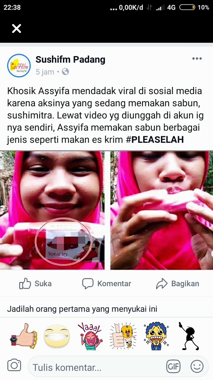 “Saya lihat di medsos ada postingan perempuan makan sabun dan sekarang viral. Unik saja, jilat sabun kok seperti jilat ice cream, hobi yang terbilang langkah,” ujar Kacong Badrut salah satu warga.