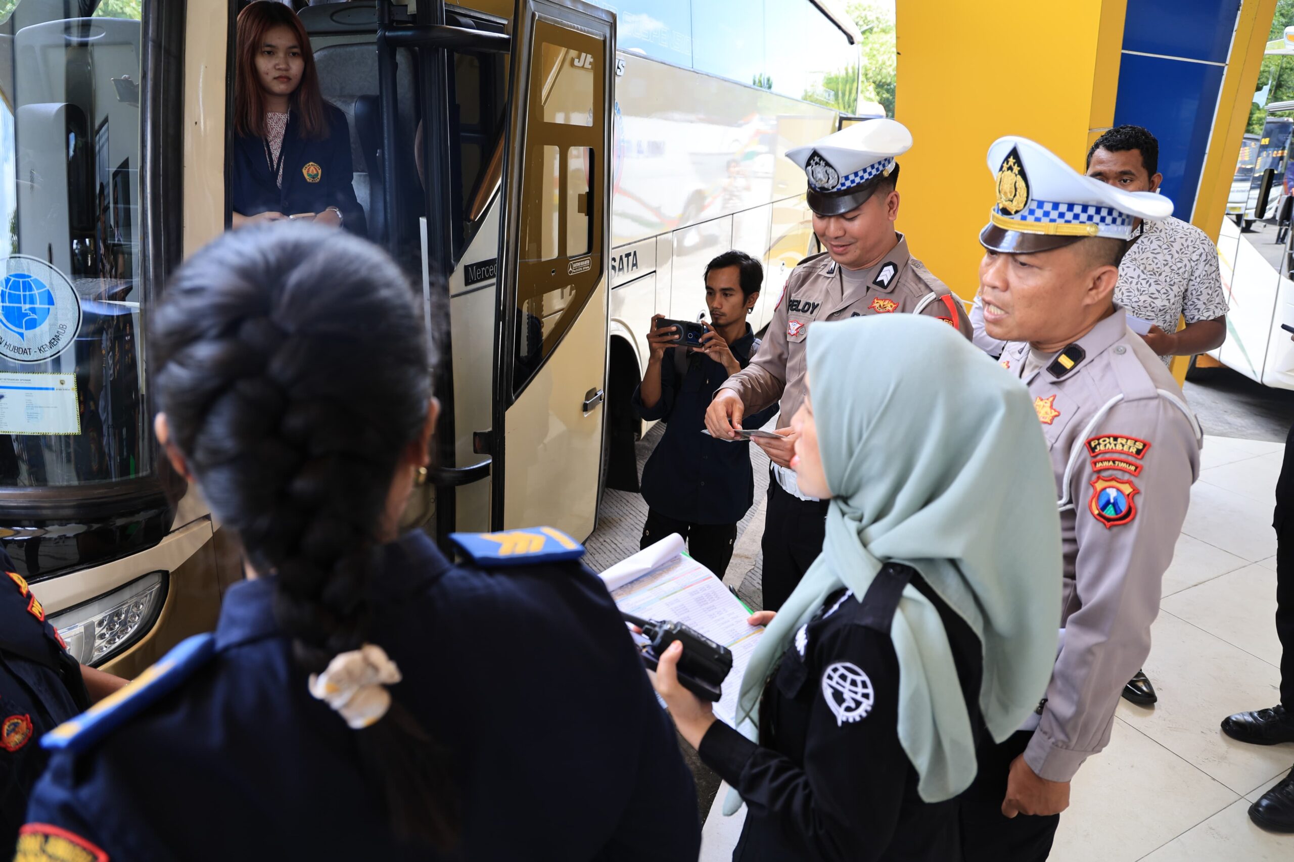 Pemeriksaan dilakukan untuk memastikan kendaraan yang membawa pemudik berada dalam kondisi layak jalan. Petugas memeriksa berbagai bagian bus, mulai dari kondisi ban, sistem pengereman, hingga kelengkapan keselamatan di dalam kendaraan.