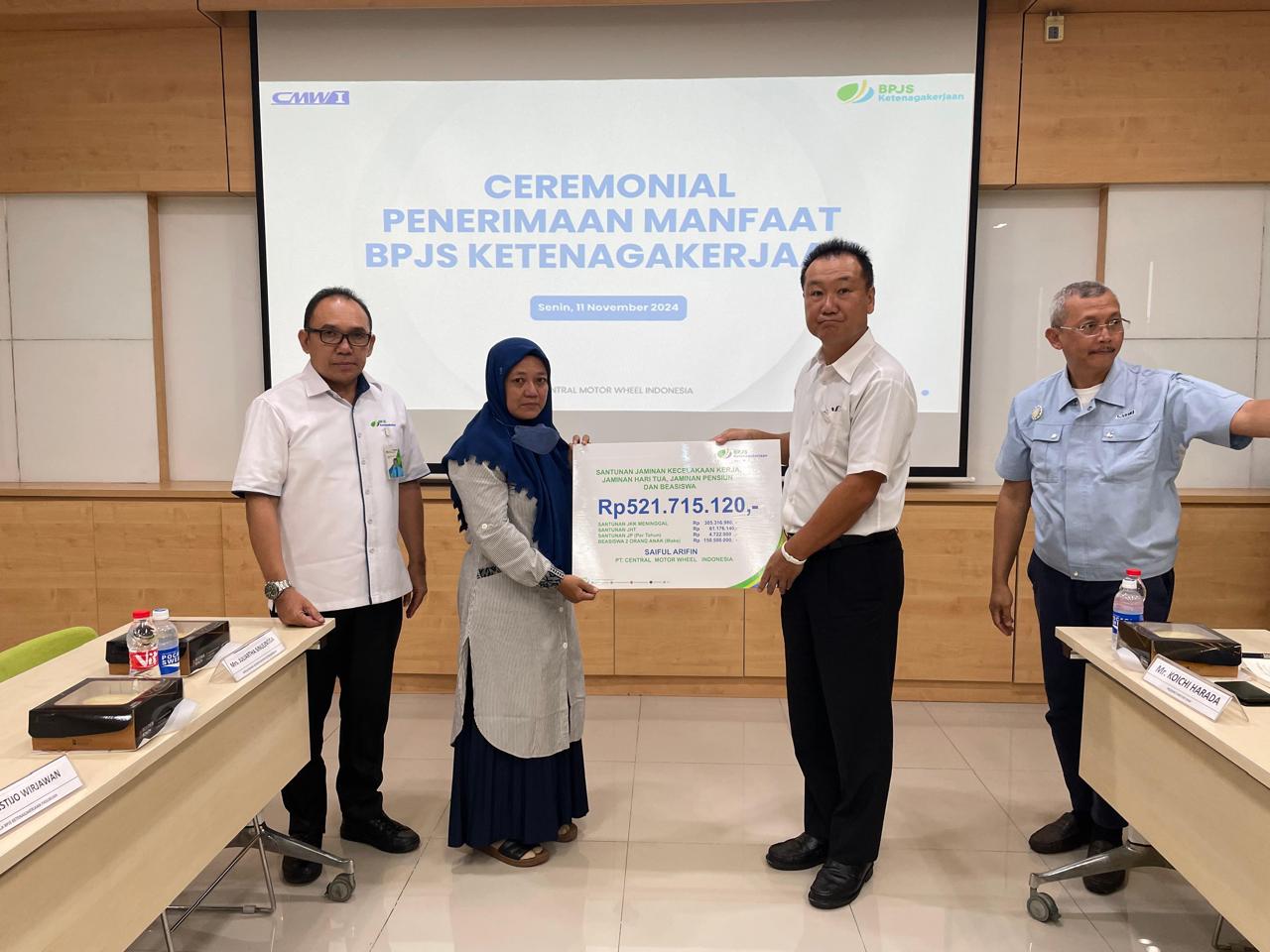 Sebagai bentuk tanggung jawab dan kepedulian, Kepala Kantor Cabang BPJS Ketenagakerjaan Sulistijo Nisita Wirjawan menyerahkan manfaat jaminan sosial ketenagakerjaan senilai total Rp 521 Juta kepada ahli waris dari almarhum Saiful Arifin. Santunan yang diberikan meliputi manfaat Jaminan Kecelakaan Kerja (JKK) dan Jaminan Kematian (JKM) sebesar Rp. 305 Juta, manfaat Jaminan Hari Tua (JHT) sebesar Rp. 61 Juta, dan Jaminan Pensiun (JP) Rp. 4,7 Juta yang akan diterima setiap bulannya dan manfaat beasiswa untuk 2 orang anak sebesar Rp. 150 Juta. Sulis menyebutkan hal ini menjadi bukti negara hadir untuk memastikan kesejahteraan pekerja dan keluarganya.