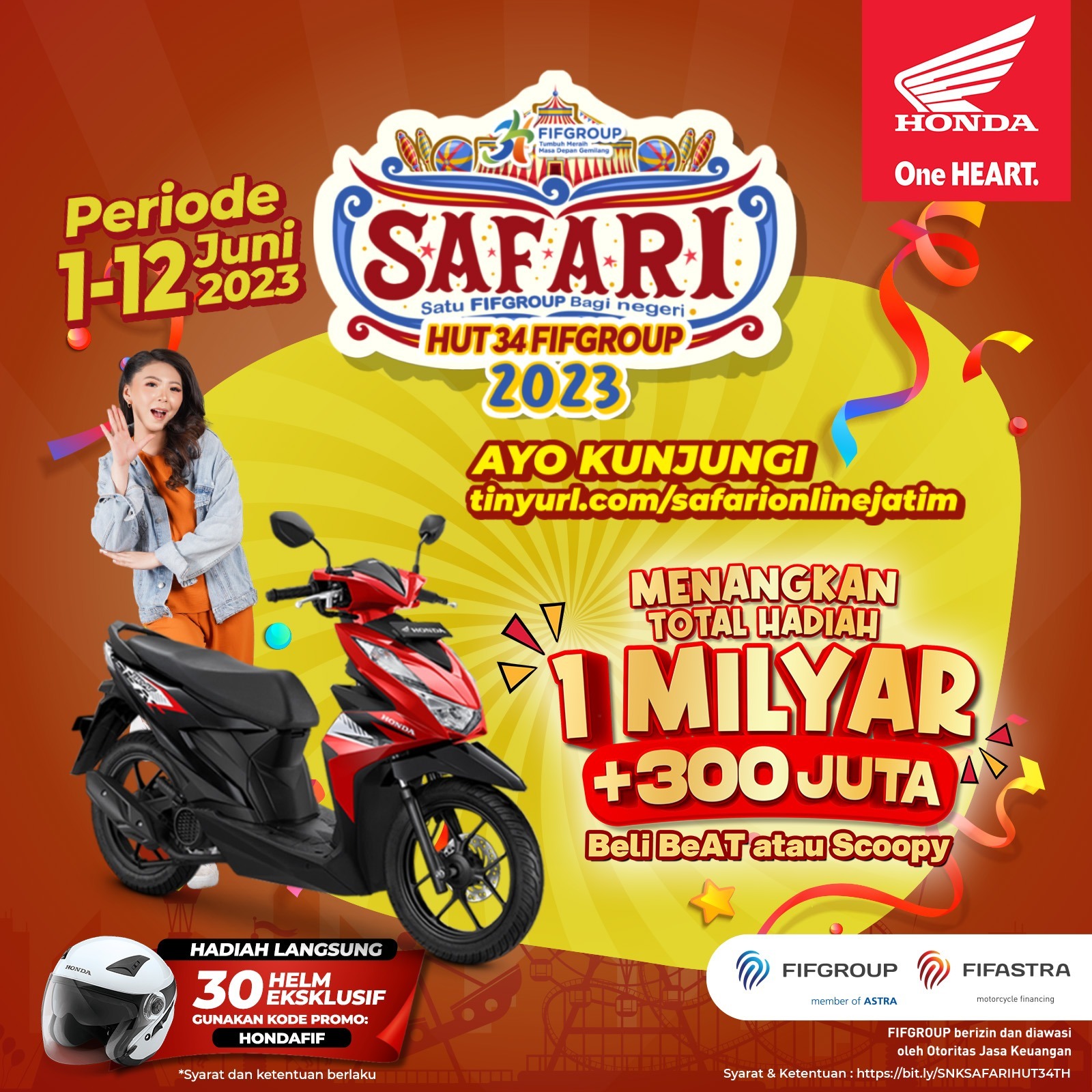 Berbagai penawaran menarik dihadirkan dalam program SAFARI. Pembelian motor skutik fashionable Honda Scoopy dapat potongan tenor angsuran hingga 5x. Untuk pembelian Honda BeAT dan Honda BeAT Street dengan potongan tenor sampai dengan 3x. Selain mendapatkan penawaran menarik, konsumen Honda juga dapat mengikuti undian yang berhadiah total 1 Miliar.