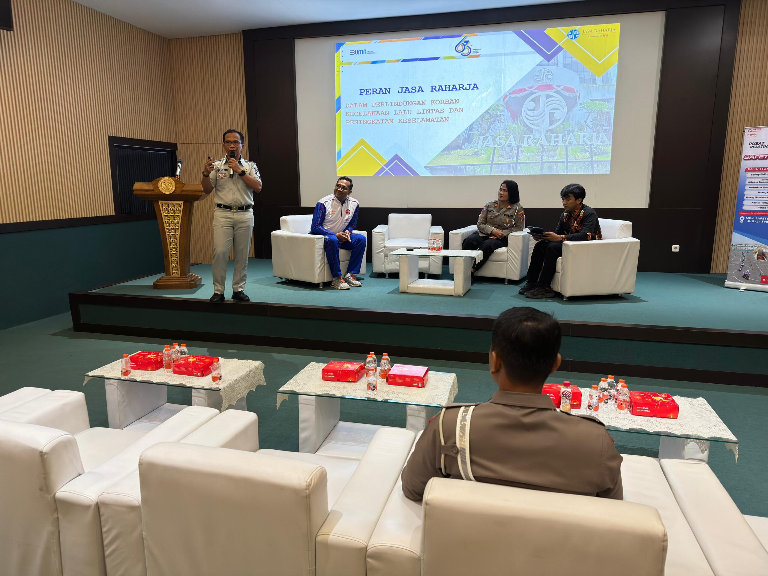 Dikarenakan sepeda motor roda dua menjadi penunjung pendukung mobilitas saat beraktivitas maka perlu dibekali ilmu aman berkendara sebagai dasar saat berkendara keseharianya. Perwakilan Jasa Raharja juga menyampaikan materi tekait perlindungan terhadap korban kecelakaan dan infomasi terkait etle dan SIM. Seminar ditutup dengan permainan games dan berbagi hadiah menarik. (dit/ari).