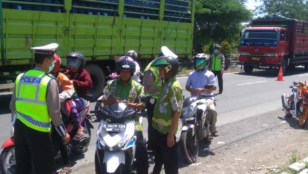 Sejumlah petugas memberhentikan pengendara roda 2 yang tidak menyalakan lampu saat siang hari, tidak membawa kelengkapan surat kendaraan bermotor, tidak memakai helm dan lain sebagainya.