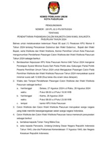Pengumuman Pendaftaran Pasangan Calon Walikota dan Wakil Walikota Pasuruan untuk Pilkada 2024