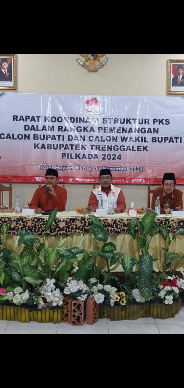 Trenggalek, kabarpas.com – DPD PKS Trenggalek menggelar rapat konsolidasi bersama seluruh struktur DPD, struktur DPC dan seluruh tokoh PKS setempat untuk pemenangan Ipin-Syah, di Hall Hotel Hayam Wuruk Trenggalek, Minggu (17/11/2024).
