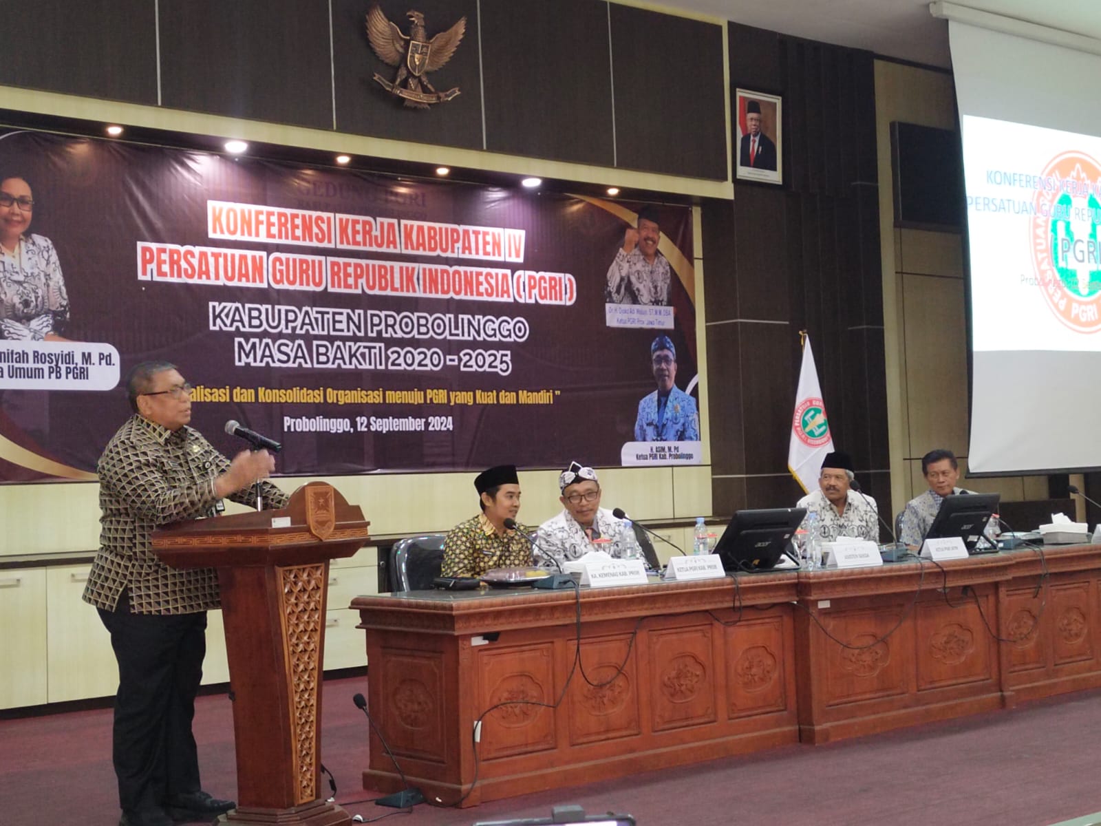 Probolinggo, Kabarpas.com – Persatuan Guru Republik Indonesia (PGRI) Kabupaten Probolinggo masa bakti 2020-2025 menggelar Konferensi Kerja Kabupaten (Konkerkab) IV di ruang pertemuan Tengger Kantor Bupati Probolinggo, Kamis (12/9/2024).