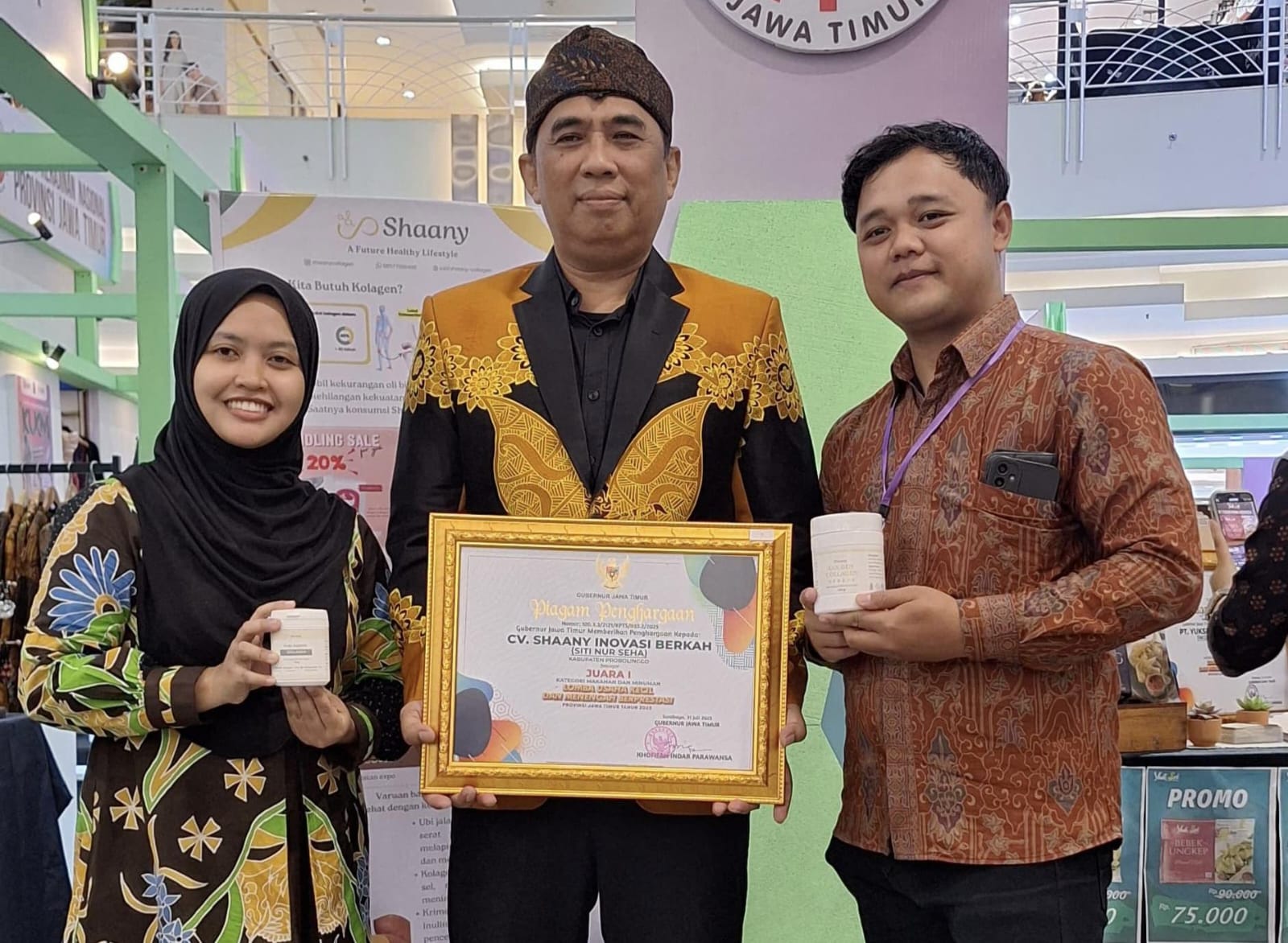 “Kami sangat bangga Shaany Collagen dapat meraih juara 1 UKM Berprestasi tingkat Jawa Timur. Prestasi ini tidak terlepas dari inovasi luar biasa dari ownernya Ibu Siti Nur Seha yang menciptakan produk yang belum banyak dikenal di Jawa Timur,” katanya.