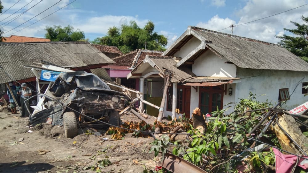 Sesampainya di TKP, sopir truk banting setir ke arah kiri. Tak ayal, truk itu pun menyasak 6 rumah, 3 warung, 1 kios, dan 2 bangunan lainnya. Selain itu, Truk juga manabrak kendaraan Toyota Fortuner bernopol L 1258 QX, Daihatsu Taft bernopol S 1143 RE, truk bernopol N 8309 K, serta 3 sepeda motor.