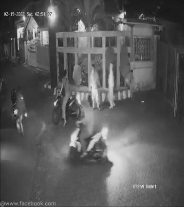 Pada video tersebut juga terekam kawanan pencuri mengacungkan celurit, Salim terjatuh dan pelaku kemudian kabur membawa motor milik warga bernama Bagas Pranata.
