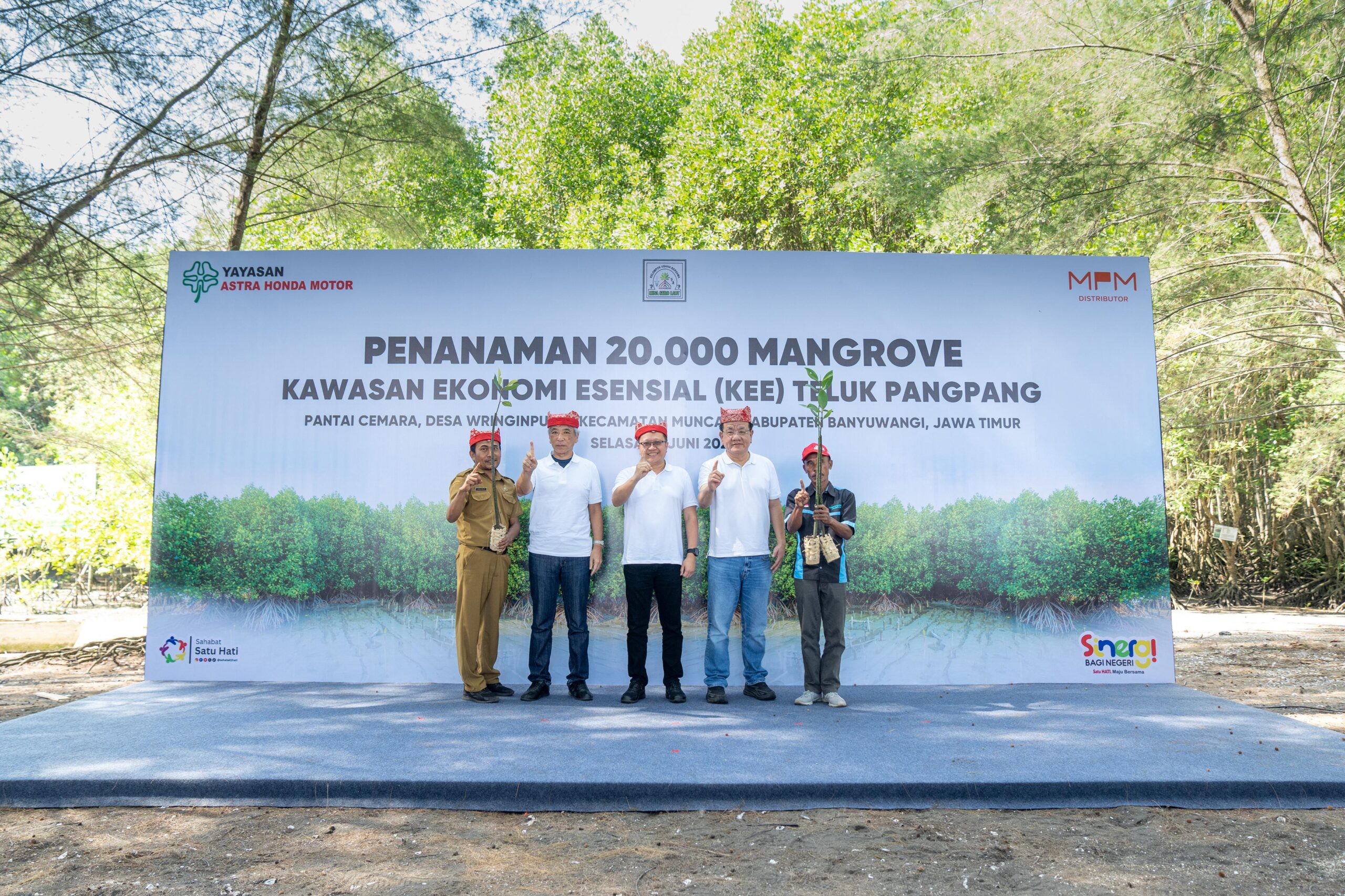 Banyuwangi, Kabarpas.com – Yayasan Astra Honda Motor (Yayasan AHM) dan PT. Mitra Pinasthika Mulia ( MPM Honda Jatim) distributor sepeda motor Honda wilayah Jatim & NTT menanam 20.000 mangrove di Kawasan Ekonomi Esensial (KEE) Teluk Pangpang Banyuwangi.